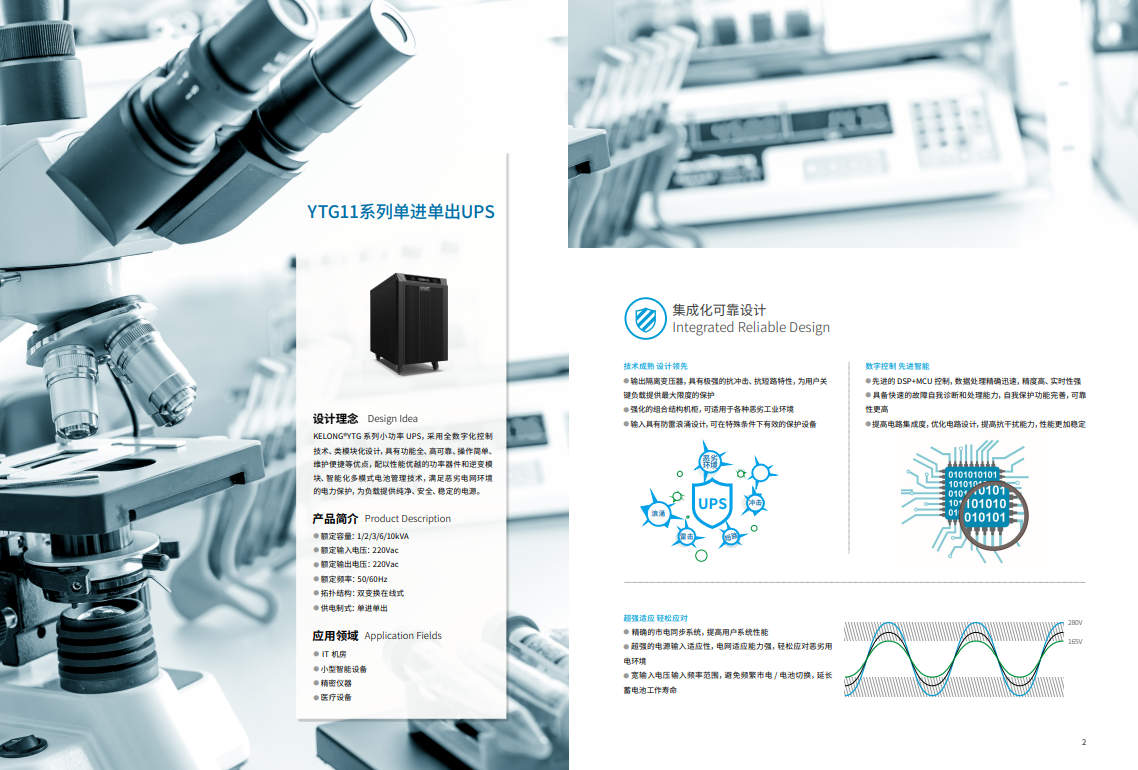 科华® YTG 系列小功率 UPS,采用全数字化控制技术、类模块化设计,具有功能全、高可靠、操作简单、维护便捷等优点,配以性能优越的功率器件和逆变模块、智能化多模式电池管理技术,满足恶劣电网环境的电力保护,为负载提供纯净、安全、稳定的电源。